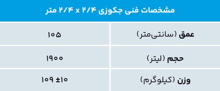 ویژگی های جکوزی پیش ساخته 2.4 در 2.4 متر زرفام